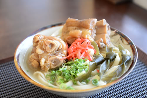 てびち(豚足)が乗ったテビチそばもとても人気のメニューです。 価格:700円
