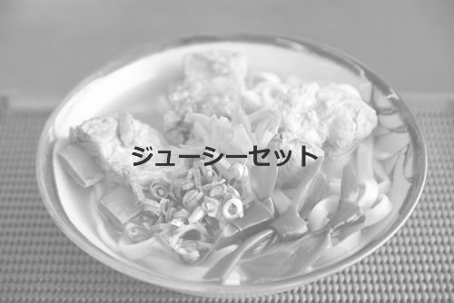 沖縄の炊き込みご飯「ジューシー」と三枚肉ソバをセットにしました。 価格:680円